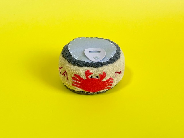 カニの缶詰めのぬいぐるみです。備蓄用にどうぞ。カニ缶が一つあると、冷蔵庫に何もないとき役立ちます。 サイズ…横8cm×奥行7cm×高さ4.5cm 素材…布、合皮、ウレタン ●1点1点丁寧に手作りしているので、 既製品とは違いとても繊細になっております。 ハンドメイド作品であることをご理解の上、ご購入頂きますようお願い申し上げます。
